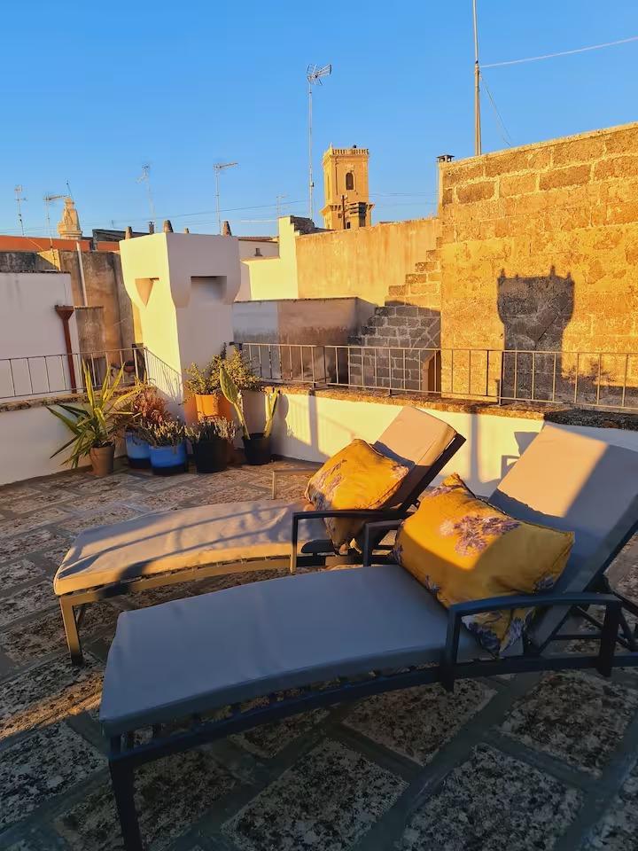 Gli ambienti sono curati con eleganza e pensati per il benessere degli ospiti. La camera da letto si apre su un balconcino antico in pietra, mentre la terrazza panoramica, collegata internamente, regala una vista spettacolare sui tetti e sui monumenti della città, un angolo perfetto per rilassarsi al tramonto.